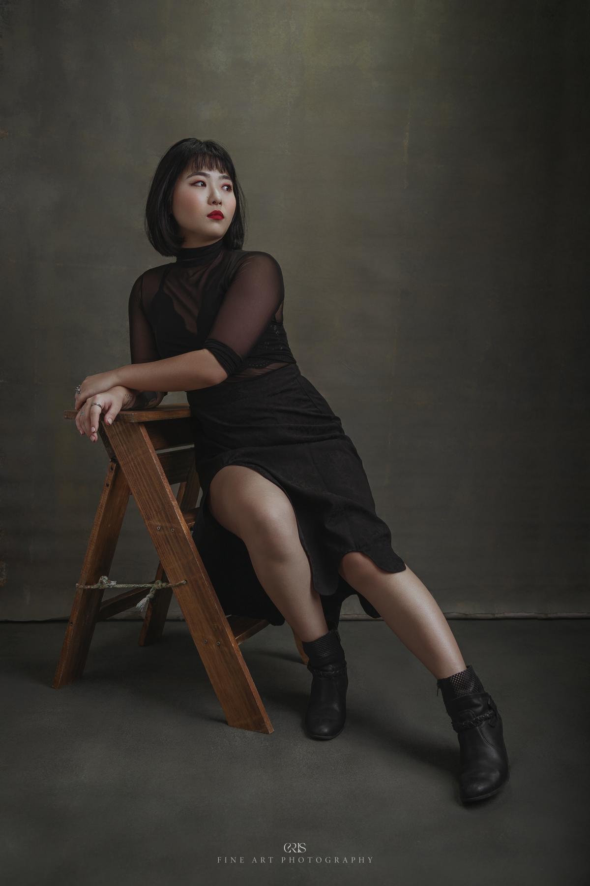 Seu olhar é doce e sereno, mas carrega a sombra sutil de uma saudade antiga —
