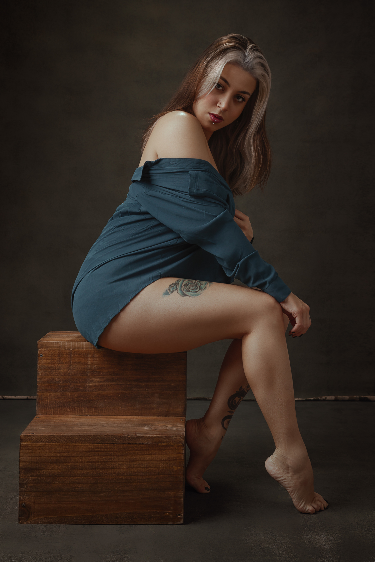 Ela é uma constelação viva, onde a vastidão do universo se encontra com a intimidade de seu olhar profundo e sedutor. Seus cabelos, como a luz da lua, caem suavemente sobre a pele pálida, criando um contraste que reflete a dualidade entre o mistério e a clareza das estrelas. Cada tatuagem em seu corpo parece contar uma história, um universo paralelo, cheio de significados ocultos, que só ela conhece. Como se o infinito estivesse sempre ao seu alcance, e ela, uma exploradora incansável dos céus e das possibilidades do cosmos. Seu olhar, intenso e cativante, carrega a sabedoria dos astros e a serenidade daqueles que compreendem a vastidão do espaço e o que se esconde nas entrelinhas da matéria e da luz. Ela não é apenas uma mulher; é um enigma celestial, onde o olhar penetrante busca, nas estrelas, respostas que a Terra ainda não compreendeu.